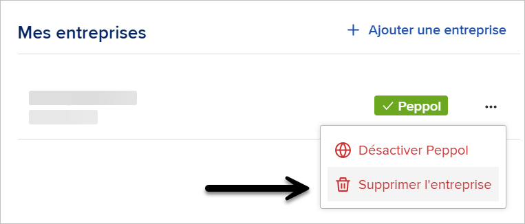Cliquez sur les 3 points et choisissez 'Supprimer l'entreprise'.