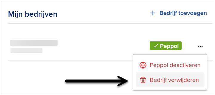 Klik op de 3 puntjes en kies 'Bedrijf verwijderen'.